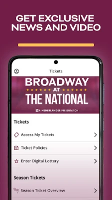 Experience the best of Broadway in Washington, D.C. with Broadway at The National. Subscribers, group leaders, single ticket holders, and all Broadway fans can enjoy the new Broadway at The National app to access tickets, exclusive content, show updates, real-time alerts, and more.