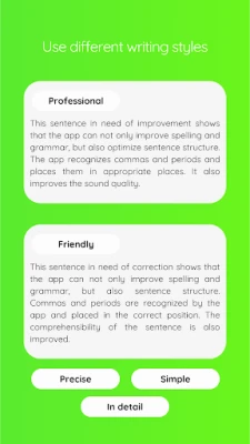 Discover 'Grammar Check App' - the ultimate app to perfect your writing skills! Free and user-friendly, this innovative application provides you with powerful spelling checks and much more. With artificial intelligence as its backbone, 'Grammar' is not limited to simple error correction but also offers comprehensive grammar checks and sentence structure correction.