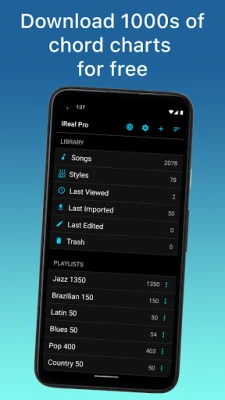 • Share individual charts or whole playlists with other iReal Pro users via email and the forums