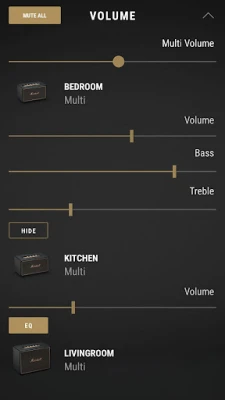 Use the Marshall Multi-Room App to: - Group or ungroup your Multi-Room speakers - Save, play and change your seven presets - Access thousands of Internet radio stations - Use the in-app equaliser to tweak treble and bass balance - Adjust the intensity of the LEDs